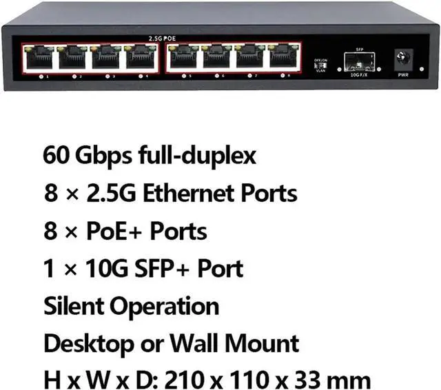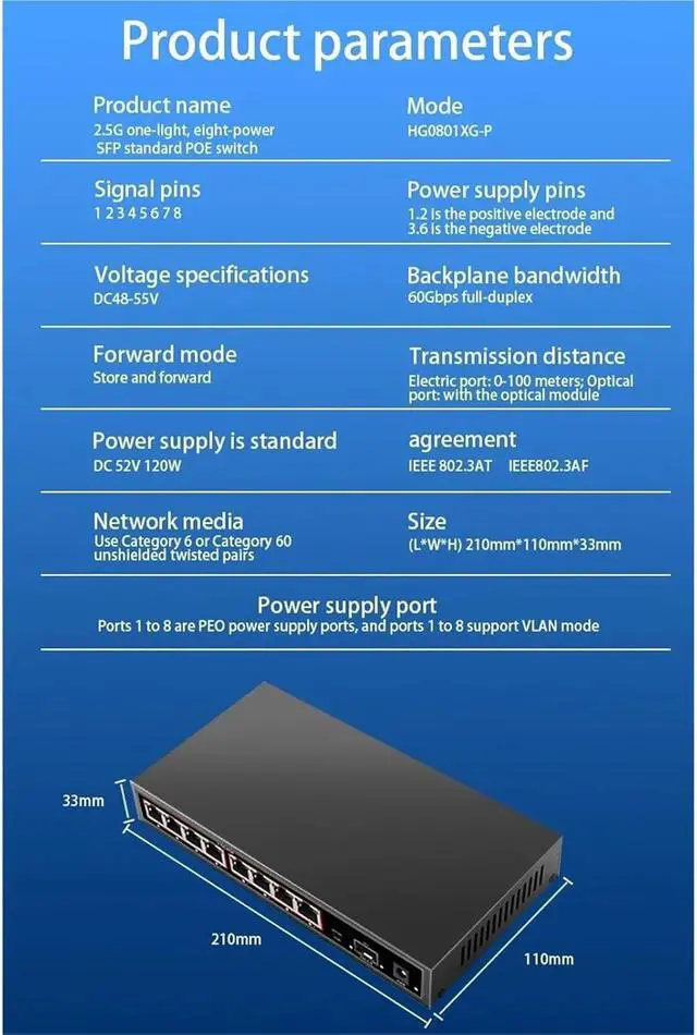 1. Multiple port options, high-speed data transfer 2. High-speed and stable, no configuration required 3. Efficient heat dissipation 4. Powerful data processing capabilities 5. High protection rating, lightning-proof design.