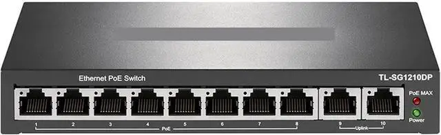 Switch Type : Gigabit Switch Number of Interfaces : 10 VLAN : VLAN Isolation Mode Package : Yes Transmission Rate : 10/100/1000Mbps Communication Mode : Full-Duplex & Half-Duplex Model Number : TL-SG1210DP Function : POE,VLAN Support