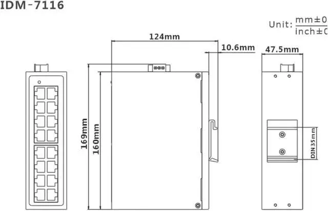 The IDM-7116 industrial Ethernet switch is entry-level industrial 8-port Ethernet switch that support IEEE 802.3/802.3u/802.3x with 10/100M, full/half-duplex, MDI/MDIX auto-sensing RJ45 ports. The IDM-7116 switch is rated to operate at temperatures ranging from -20 to70 °C, and is rugged enough for any harsh industrial environment. The switches can be easily installed on a DIN-rail as well as in distribution boxes. The DIN-rail mounting, DC24V or AC24V power supply, LED indicators make the plug-and-play IDM-7116 switches easy to use and reliable.