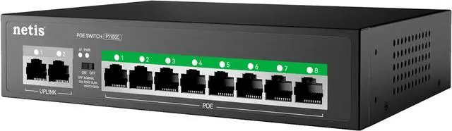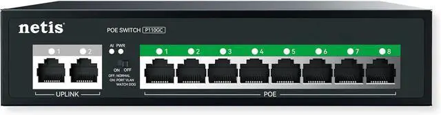 10-Port GbE Layout: 8 x PoE+ 10/100/1000 RJ45 Ports Plus 2 x GbE RJ45 Uplink Ports For NVR, Router, Or Core Switch Connections