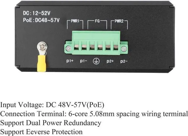 Enhanced Protection: IP40 protection level and advanced lightning protection (common mode ± 4kV, differential mode ± 2kV) safeguard your network from electrical surges and environmental hazards.