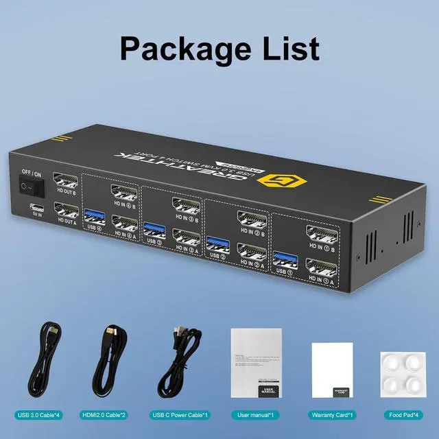 [Excellent After-sales Service]The product packaging comes with 2 HDM2.0 cables, 4 USB3.0 cables, and 1USB C power cable. lt is our responsibility to ensure that every user has a great product experience andshopping experience. Therefore, if you encounter any problems during the use of this product, please do nothesitate to contact us , We will respond to your problems as quickly as possible after receiving your email.
