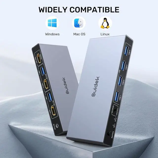 1 Monitor 2 Computers HDMI KVM Switch: This USB KVM switcher has two HDMI ports. It is possible to control two computers sharing one monitor, mouse, and keyboard through this USB KVM. It is also compatible with different systems: Windows, Mac, and Linux. Note: Both the computer and monitor need to support HDMI interface. Note: EDID is not supported.