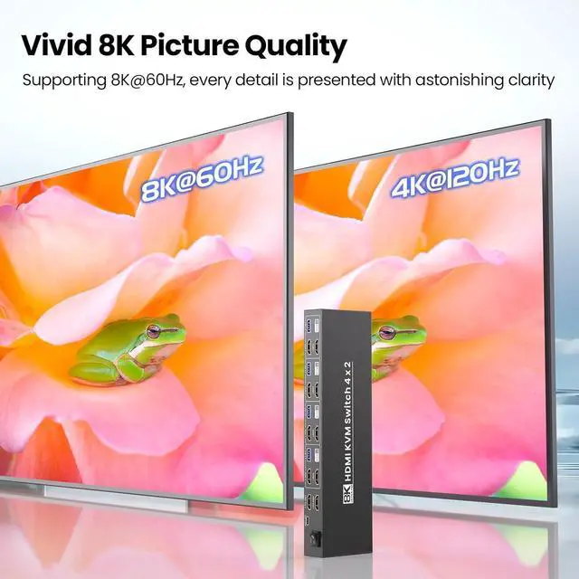 8K Ultra HD Resolution SupportWith support for up to 8K ultra-high definition resolution, this 4 computer KVM switch delivers an unparalleled visual experience for both professional and personal use. Its ideal for gaming, office work, media editing, and any scenario that demands crisp, clear visuals.