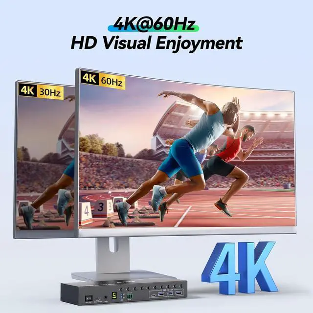 Ultra HD 4K@60Hz Visual EnjoymentThis USB 3.0 KVM switch HDMI support resolution up to 4K@60Hz and backward compatible 4K@30Hz, 2560*1440@120Hz. The 4K KVM Switches also work with ultrawide monitors.