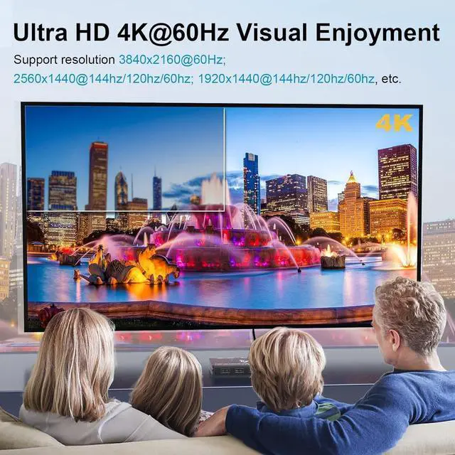 • Support 57W PD Fast ChargingDesigned with PD charging port to give enough power for your laptop during using. This is a very stable KVM switch, support the follow resolutions, 3840x2160@60Hz, 2560x1440@144hz/120hz/60hz, 1920x1440@144hz/120hz/60hz, etc. For 4k resolution please use 4K HDMI cable and the length not exceed 1.5m.
