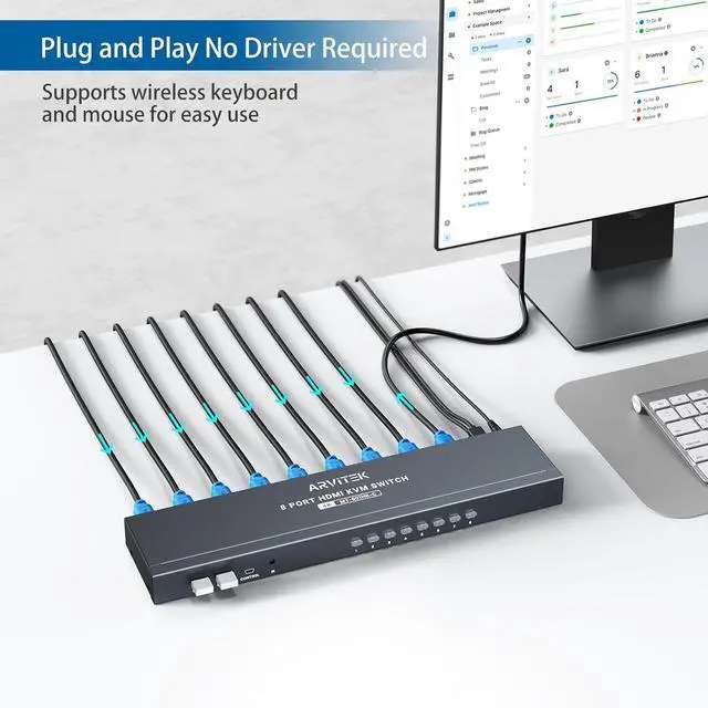 8 Port HDMI KVM Switch: Control up to 8 computers with one set of monitor, keyboard, and mouse. Share USB devices such as printer, scanner, and USB flash drive easily. Ideal for saving workspace and improving efficiency