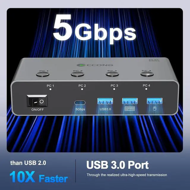 Three USB3.0 and 1 USBC Port:This KVM switch features 3 USB 3.0 and 1 USB-C ports. It allows you to seamlessly share peripherals like printers and external drives between two computers, reducing clutter and enhancing efficiency. Ideal for sharing USB devices such as keyboards, mice, scanners, printers, and flash drives, this KVM switch automatically detects and matches connected devices on both computers