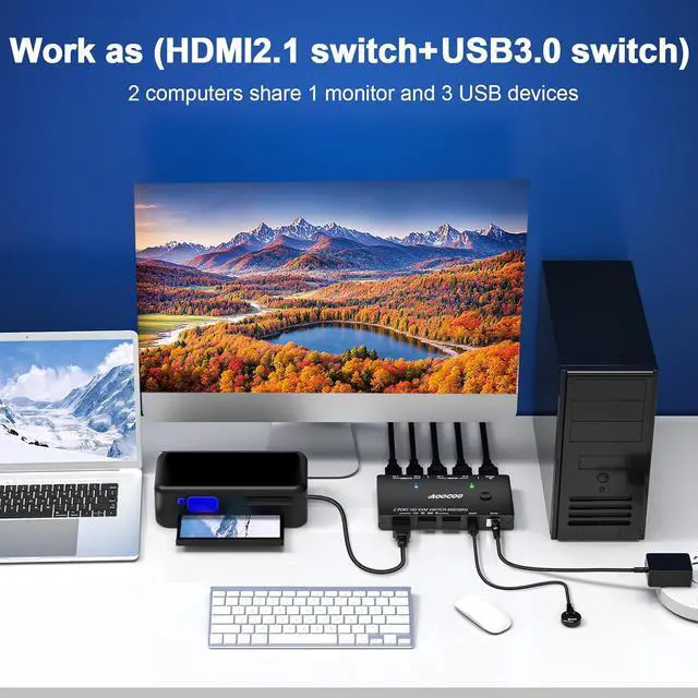 • 8K ResolutionHDMI KVM Switch supports stunning 8K resolution at 60Hz, ensuring crystal-clear and highly detailed visuals for your monitors. Additionally, it is HDCP 2.2 compliant, allowing you to seamlessly view HDCP-protected content on your monitors without any interruptions. It also supports 4K@60Hz, 2K, 3D, and 1080P, offering flexibility for various display needs.