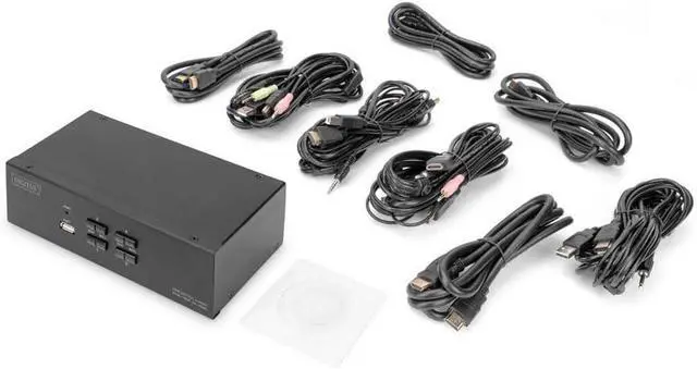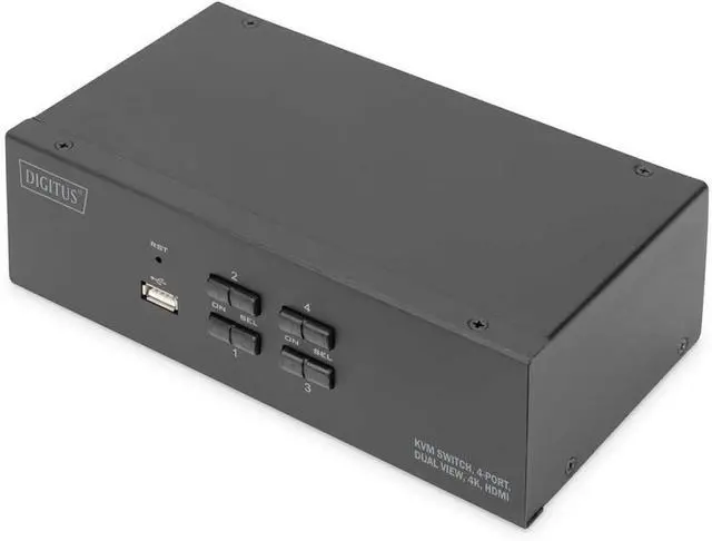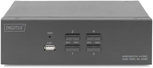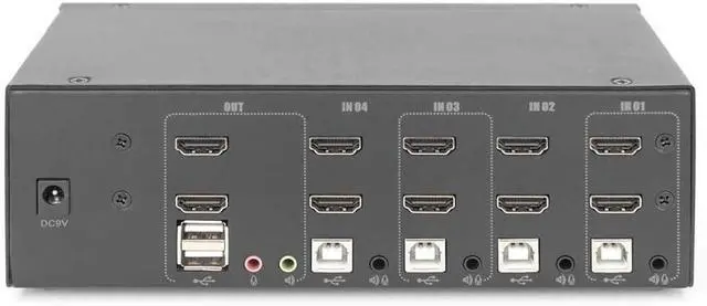 Switch between PCs via switch on the KVM switch or hotkey on the keyboard