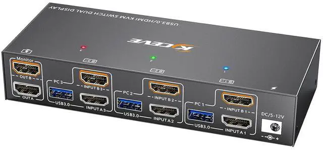 Dual Monitor KVM Switch for 3 PCThis Dual Monitor KVM HDMI Switch allows to control 3 computers by 1 set of keyboard & mouse
