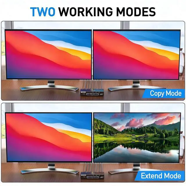 Extended Mode&Copy Mode2 Monitor KVM switches require 2*HDMI connections per computer, and for computers with discrete and integrated graphics cards require both HDMI ports to be belong of the discrete graphics card. Note:Press "Window+P",a small window will pop up, in which to choose "Duplicate" Mode or "Extend" Mode.