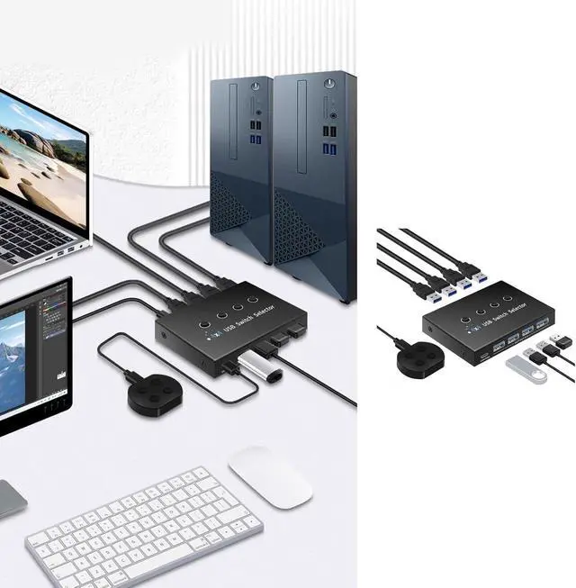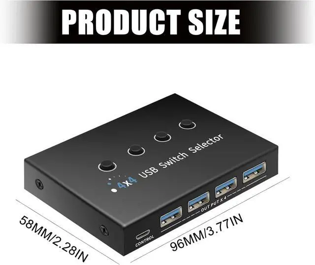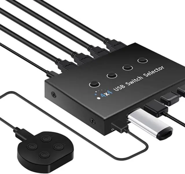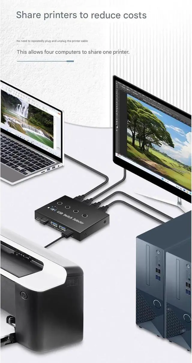 Multi Device Seamless Switching : Effortlessly share 4 USB devices among 4 computers with this USB30 switcher, eliminating frequent plugging and unplugging for enhanced efficiency, perfect for professional needing frequent device switching