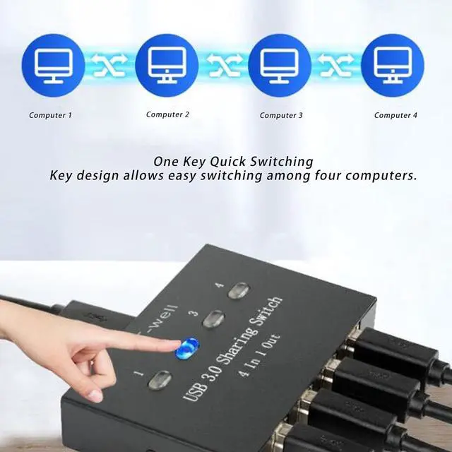 Share Multiple DevicesThis 4 in 1 Out USB switcher supports 1 computers sharing 4 USB devices like keyboards, mouses, printers, headphones, and USB cameras. Switch freely between your work computer and personal computer and enhance workflow efficiency and making multi user printing a breeze.