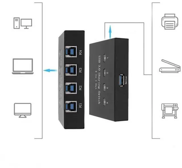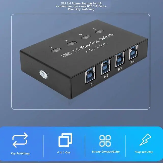 Convenient Printer SharingSimplifying the process of sharing a printer among multiple computers, this device enhances work convenience and streamlines the printing process for seamless collaboration. This USB switch hub is switch allows for smooth transitions between four devices, creating a clean and efficient workspace.