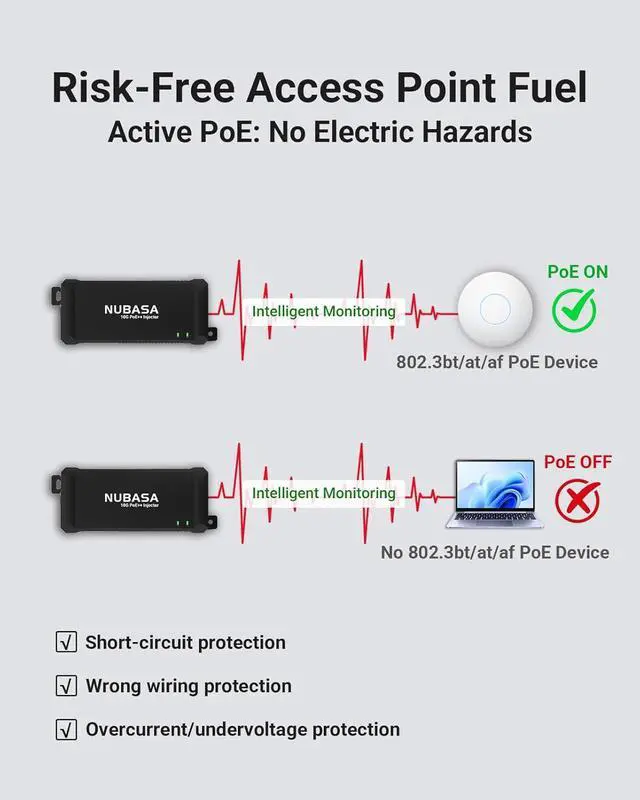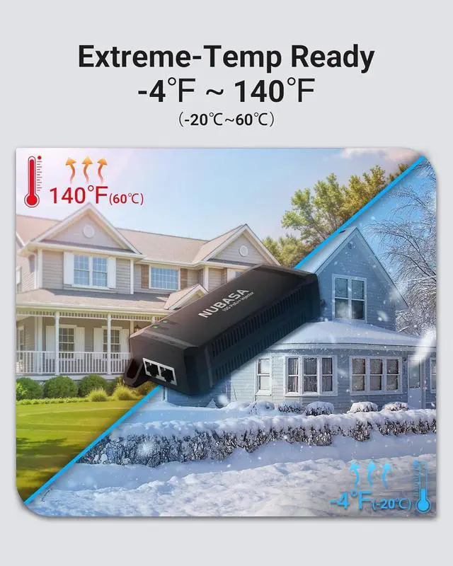 Full Gigabit Speed with Zero Data Loss Ideal for 4K Video & Real-Time Monitoring The gigabit PoE injector supports 1000Mbps full-duplex transmission over Cat5e/Cat6 cables up to 100 metersensures smooth streaming for security cameras and network systems