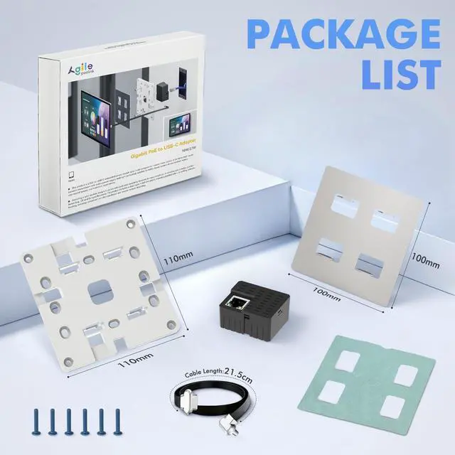 AllinOne Complete KitThis PoE to USBC adapter comes with a sturdy mounting bracket for seamless flushwall installation. No extra parts neededeverything you require for a clean, professional setup is included in one package, ideal for smart home panels, office tablets, and commercial displays.
