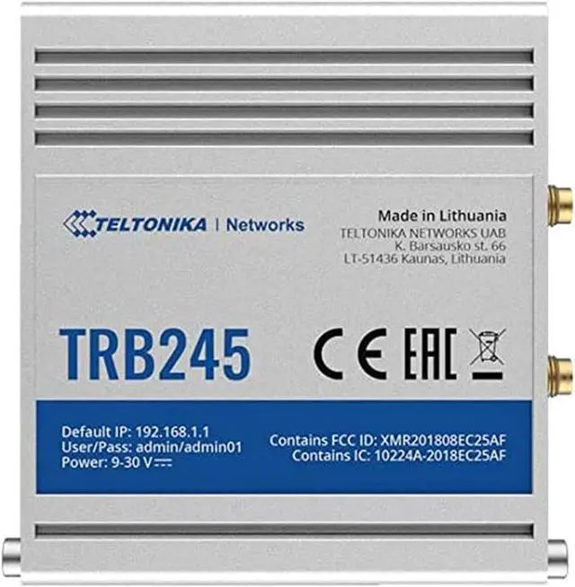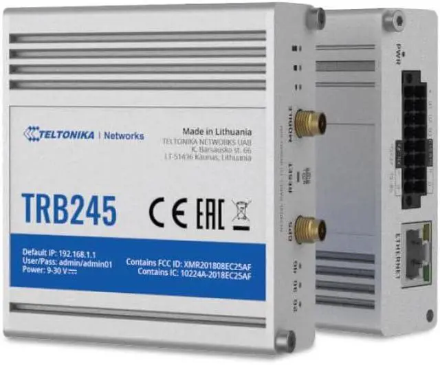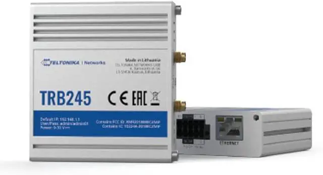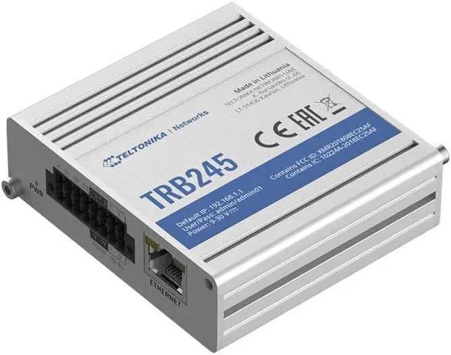 Teltonika TRB245 Industrial Rugged LTE Gateway TRB245000000, 150, W125727569 (Gateway TRB245000000, 150 Mpps, SNMP, TCP, UDP, IPv4, IPv6, ICMP, NTP, DNS, HTTP, HTTPS, FTP, SMTP, SSL)