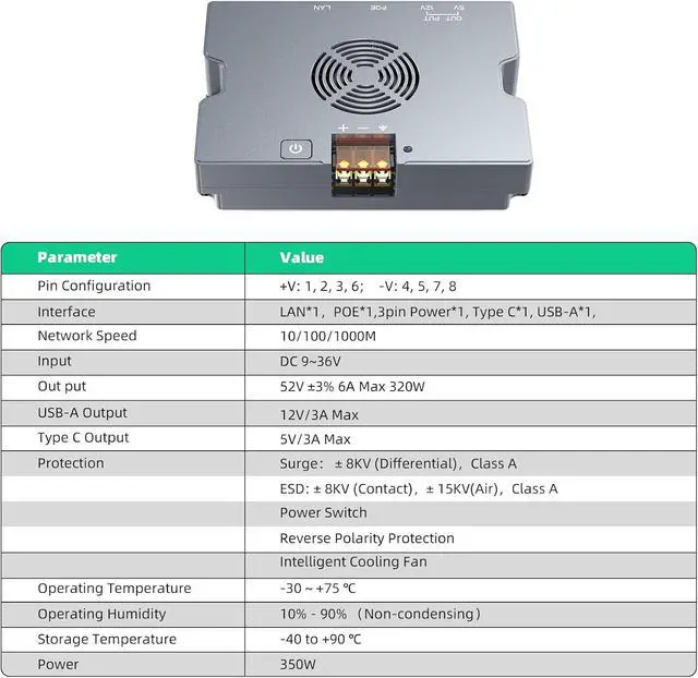Efficient Cooling & Rugged Durability: Equipped with a smart, silent fan for optimal cooling in extreme conditions (from -30°C to 75°C). The durable aluminum alloy housing offers resistance to heat, shocks, and harsh weather, ensuring long-lasting performance in tough environments.