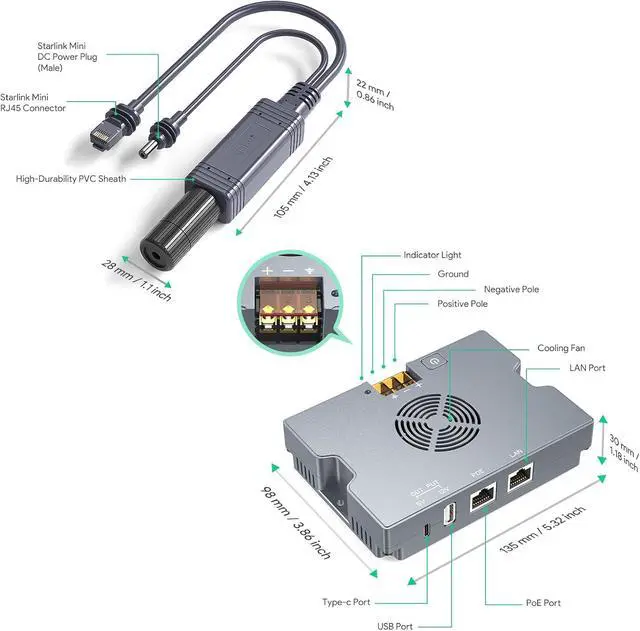 Safe, Simple, & Reliable Operation: Enjoy peace of mind with a one-touch power switch, surge protection, ESD (Electrostatic Discharge) protection, and reverse polarity safeguards. Designed for safe, stable, and effortless operationjust plug it in and get reliable Starlink Mini service without the hassle.