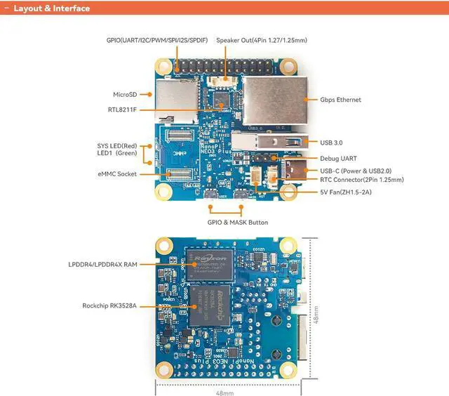 [Maker-Friendly I/O] 26-pin GPIO (Pi-compatible), UART, RTC, speaker header. Easy expansion for sensors and peripherals.