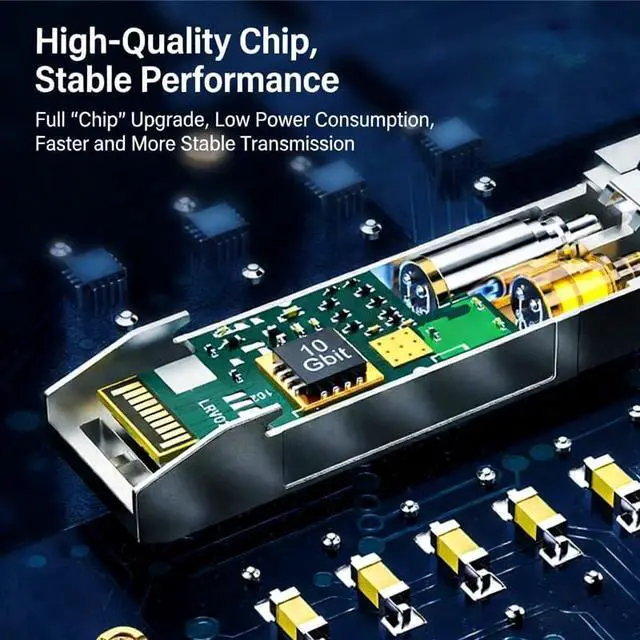 • Features a standard SFP+ form factor with dual LC connectors. Offers broad compatibility with most industry-standard switches, routers, and networking equipment featuring SFP+ slots. Hot-pluggable for easy installation.