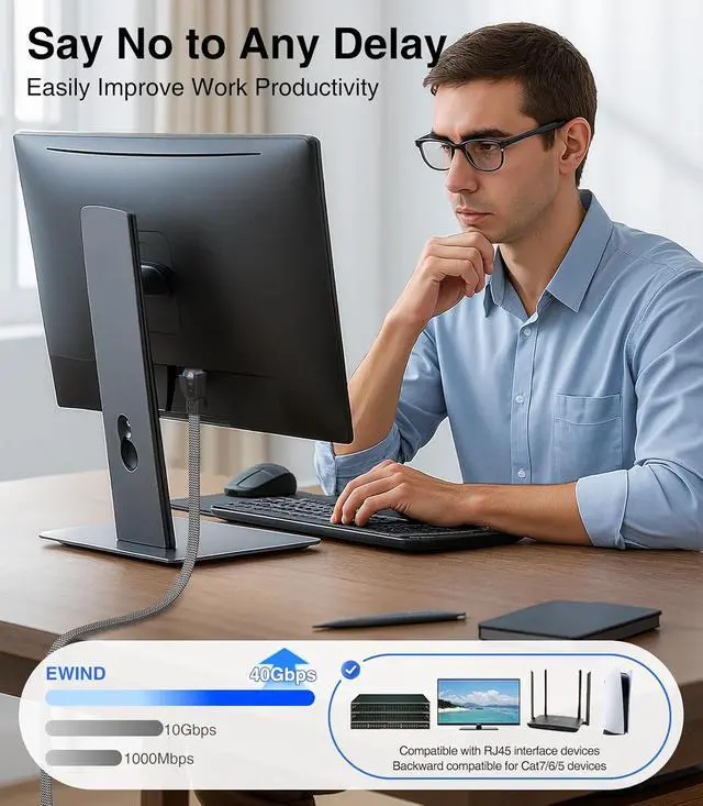 [Unlock Ultra-High-Speed Internet] Say goodbye to slow downloads and choppy streams! EWIND cat 8 ethernet cable combines massive 2000MHz bandwidth and 40Gbps speeds with advanced 26AWG engineering to dramatically enhance everything you do online. Enjoy faster uploads, stunning clarity in every image, and buttery-smooth gaming and video calls.
