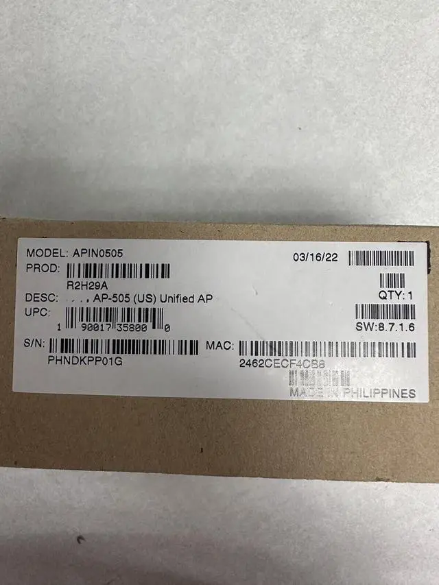 Part Number: AP-505(US) R2H29A Support: Power over Ethernet (PoE) MIMO technology: 2x2:2 MIMO for enhanced performance Wi-Fi standard: 802.11ax (Wi-Fi 6) Dual-band: (2.4 GHz and 5 GHz) operation