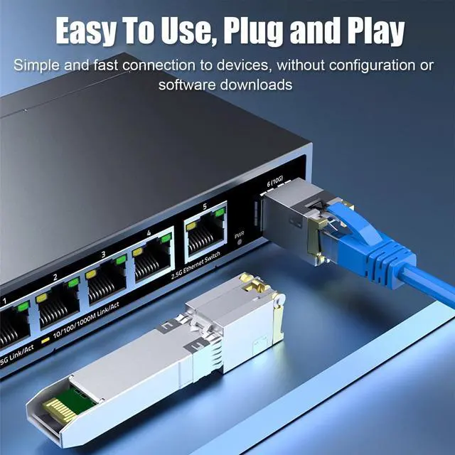 10G Copper Transceiver10G SFP+ to RJ45 Copper module for CAT6A/CAT7/CAT8 cable, copper RJ-45 connector. Supports 10Gbps rate for using Cat 5e cable or better.