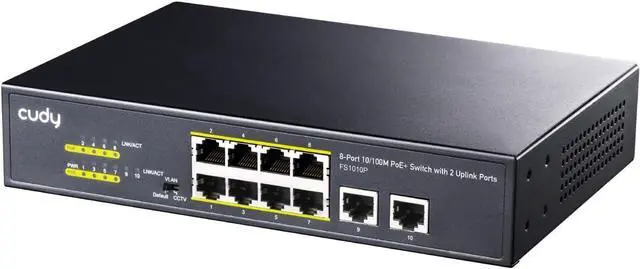 Next pageThis ItemCudy 8 Port PoE+ Switch with 2 Uplink Ports 120W, 8 10/100Mbps PoE+@120W, Extend/VLAN Mode, 802.3af, 802.3at Standard, Fanless, Watchdog, Plug and Play FS1010PRecommendationsPOE Gigabit Switch 12 Ports 1000Mbps Switches with 2 uplink & 2 SFP: TEROW 8-Port PoE Ethernet&10-Port Network with 2 SFP Module,120W,802.3af/at Compliant, Plug & Play, Metal Fanless with Shielded TP-Link TL-SG116P | 16 Port Gigabit PoE Switch | 16 PoE+ Ports @120W | Plug & Play | Extend, Priority & Isolation Mode | PoE Auto Recovery | Fanless | QoS & IGMP Snooping Reidubo 8 Port Gigabit PoE Switch with 2 Gigabit Uplink,1000Mbps PoE Ethernet Unmanaged Network Switch,120W, Plug & Play, VLAN, Suitable for Access Point-AP and PoE Surveillance Camera MokerLink 8 Port PoE Switch with 6 PoE+ Port, 2 Uplink, 100Mbps, 78W AI Detection IEEE802.3af/at, Fanless Metal Plug & Play Network Switch TP-Link LS108GP | 8 Port PoE Gigabit Ethernet Switch | 8 PoE+ Port @ 62W | Plug & Play | Extend Mode | PoE Auto Recovery | Desktop/Wall Mount | Silent Operation