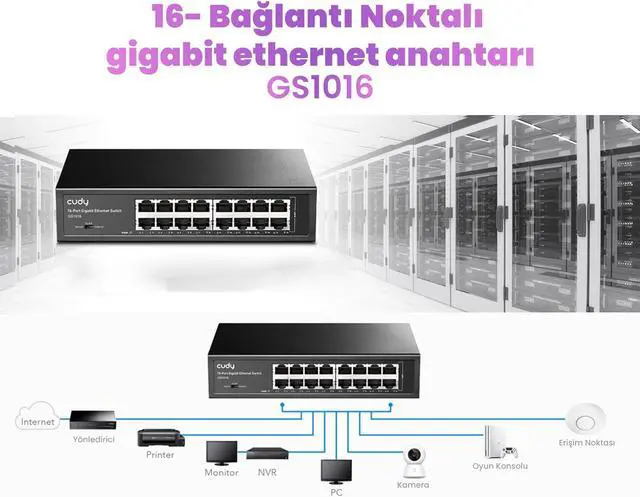 GS1016 made to Expand Network-16× 10/100/1000Mbps RJ45 Ports supporting Auto Negotiation and Auto MDI/MDIX.