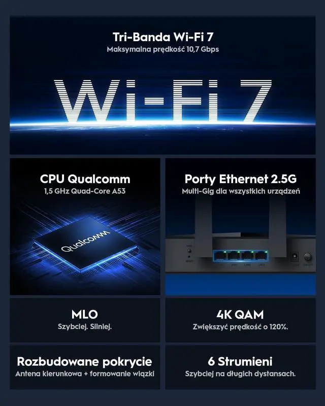 Supercharged BE11000 Tri-Band Wi-Fi 7 Speed: Features cutting-edge Wi-Fi 7 technology, delivers speeds of 5760 Mbps on 6GHz, 4320 Mbps on 5GHz, and 688 Mbps on 2.4GHz.