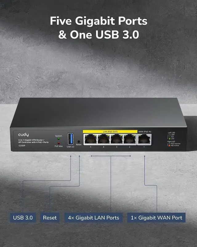 Cudy C200P is compatible with Cudy Access Points and enables centralized management of up to 200 APs through a unified interface*, enabling efficient batch configuration and firmware updates.