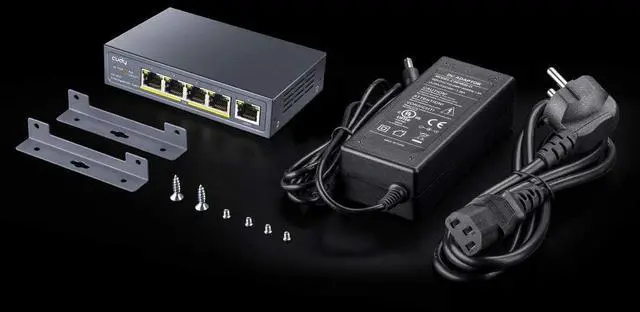 Economical IEEE 802.3af / 802.3at Gigabit PoE+ Switch with 60W Total PoE Power Supply Ideal for small installations of 4 PoE devices (IP Phone, Wired Surveillance Camera, Wireless Access Point).