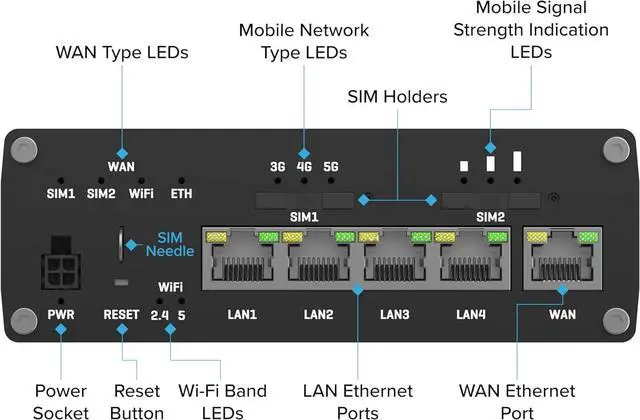 Dual SIM Failover & Load Balancing Ensures uninterrupted connectivity by automatically switching between two SIM cards and balancing network traffic.