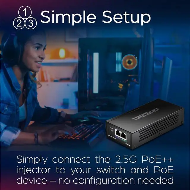 2.5 GIGABIT SPEEDS: Equipped with a 2.5GBASE -T RJ-45 port that converts a non-PoE port to a PoE++ Port providingnetwork speeds of up to 2.5G bps over existing Cat5e or better cabling.