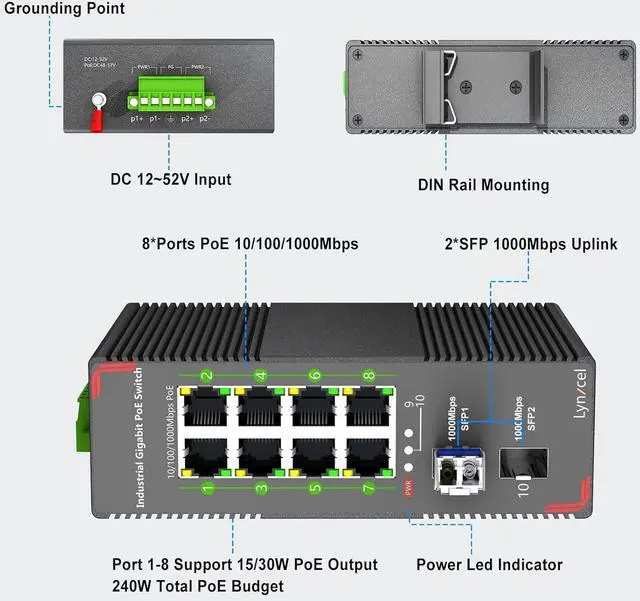 Dual Redundant Power SupplyThis ethernet switch can automatic fault switching, with anti-overload protection, anti-reverse connection protection, will not damage the equipment. Power Input Voltage 12-52V DC.