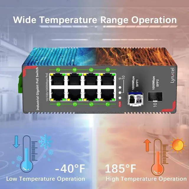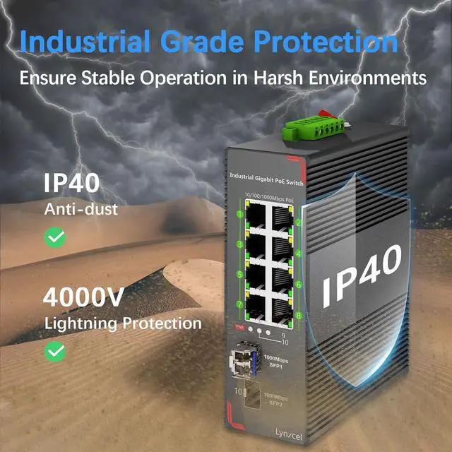 Industrial Grade DesignInclude IP40 anti-dust, -40~185°F wide temperature range, rugged aluminum alloy groove - fanless natural heat dissipation, 4KV lightning protectin, anti-static, anti-electromagnetic interference, surge protection.