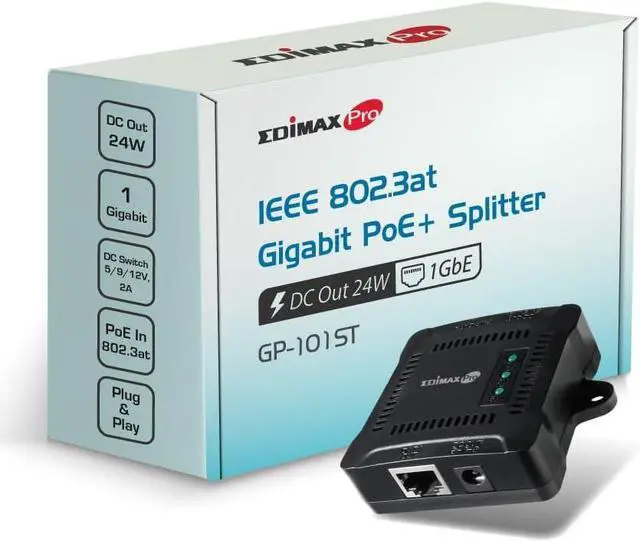 Supports up to Gigabit Ethernet speeds with a RJ45 10/100/1000 Base-T PoE input port and a RJ45 10/100/1000 Base-T output port.