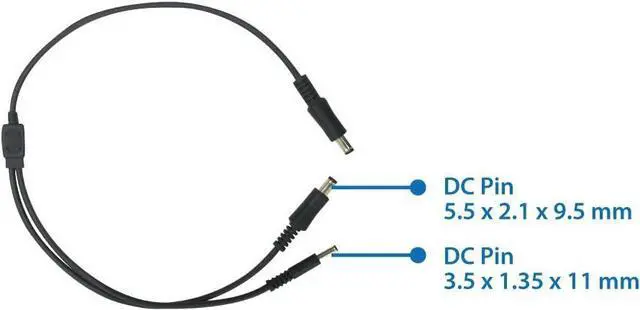 Y-cable DC Pin cable included ( 5.5 x 2.1 x 9.5 mm and 3.5 x 1.35 x 11mm)