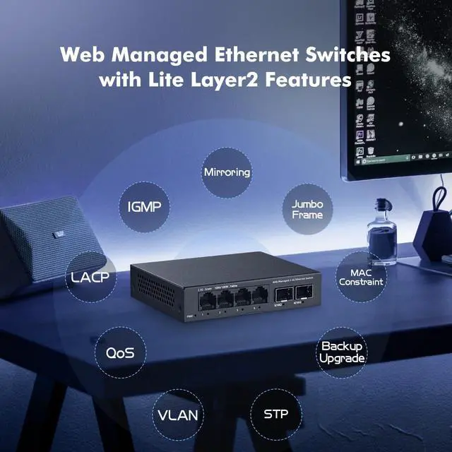 | Management | Layer2 features, support VLAN, QoS, STP/RSTP, Trunk, LACP, IGMP, etc. |