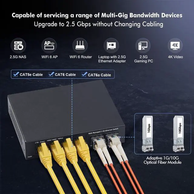 4× 2.5 Gbps Ports Unlock the Full Potential of 2.5G Nas and WiFi 7/6 APs. leveraging existing CAT5E cabling infrastructure for cost saving with no additional cables required.