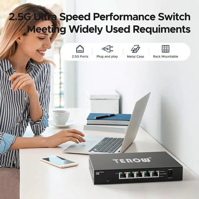 • Plug&PlayUnmanaged Plug and Play 2.5Gbps ethernet switch, Just plug in the power cable, connect the ethernet cable to your device and it's easy to use without any configuration.