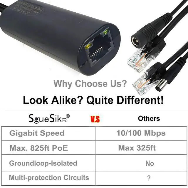 Our powerful Gigabit PoE injector and splitter kits are designed to deliver remote power to multiple non-PoE network devices over Ethernet cables. Whether you need to power non-PoE IP Camera or Wireless AP, the SGUESIKR Gigabit PoE Adapters has you covered.
