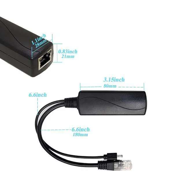 The PoE splitter is powered from PoE switch, and it will break the PoE power into power(via power cable) and data(via RJ45 cable), then those Non-PoE device can use it just as PoE device. Only need a network RJ45 cable, can right to the install place, no extra power adaapter ever needed!