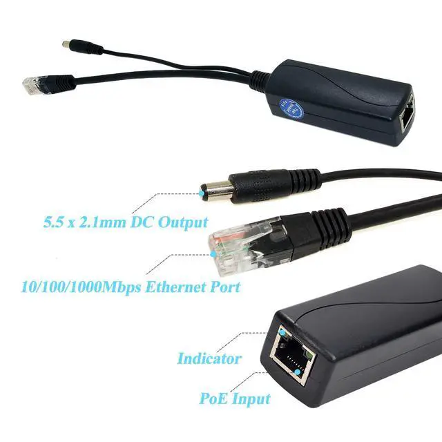 - Answer: If your place or office has PoE power like PoE switch, and you're looking for alternative power output for your Non-PoE device because you don't want to install extra power adapter. Then our PoE splitter is work with you, it can received PoE power, and break it into DC power and Ethernet via 2 cable for your Non-PoE device.