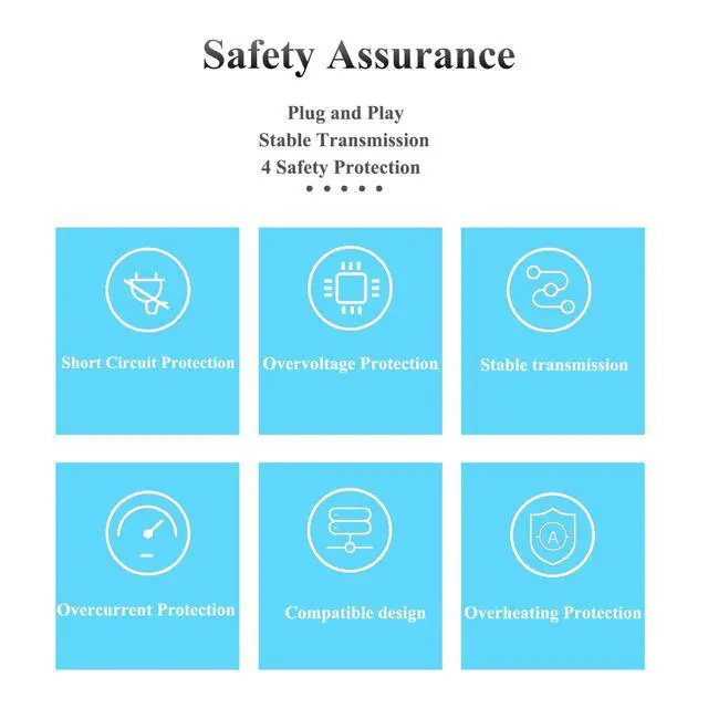Built in advanced chip, offer multiple protection to protect terminal device. Over current, short circuit, over voltage, over power protection.