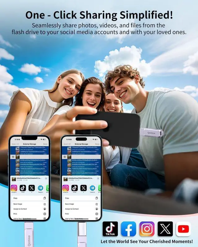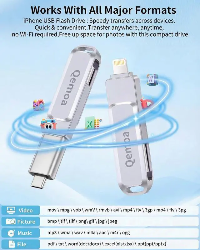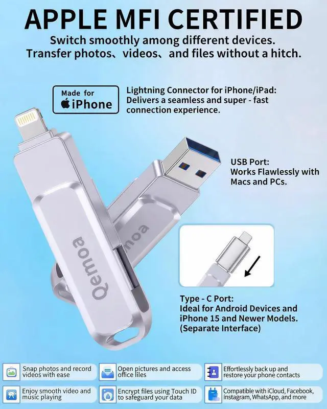 Qemoa MFi Certified Flash Drive - Effortless Cross-Device Data Sharing