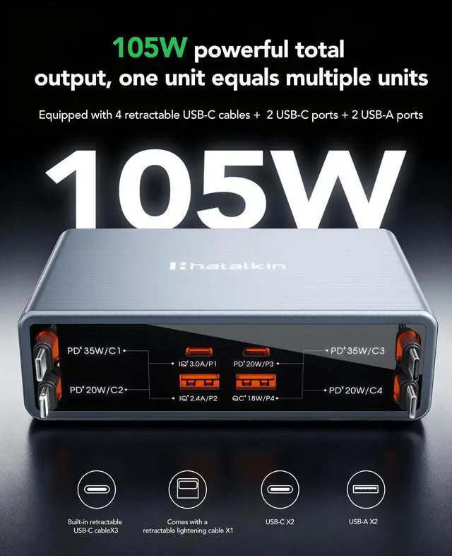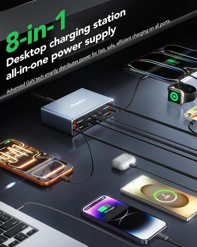 8-in-1 Charging Station for Multiple Devices,105W MAX Charging Power