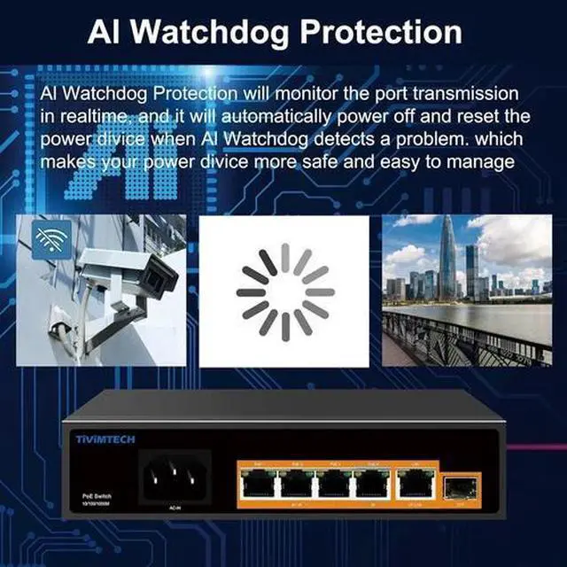This 6-Port PoE Switch is designed for efficient and flexible network expansion, featuring 4 PoE+ ports and 2 Ethernet uplink ports, all supporting 10/100Mbps speeds. Port 1 offers Hi-PoE capability, delivering up to 60W, while ports 24 provide PoE+ power up to 30W per port, accommodating high-power devices such as IP cameras and wireless access points. The included 60W DC power adapter ensures reliable operation. An Extend function allows PoE transmission distances of up to 250 meters, ideal for larger installations. PD detection automatically identifies connected PoE devices and supplies the appropriate power. Please note: This switch does not support passive PoE devices. Its compact design and robust feature set make it an excellent choice for small to medium-sized networks requiring both power and data over Ethernet.
